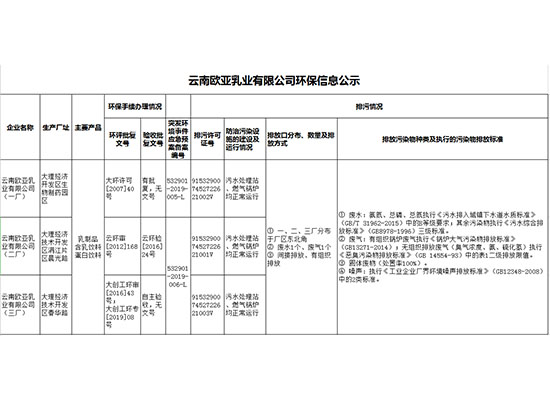 云南歐亞乳業(yè)有限公司(二廠)信息公開(kāi)